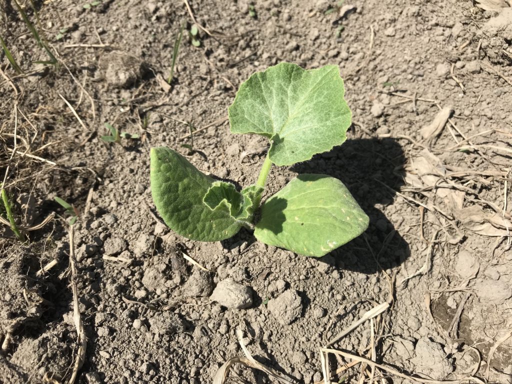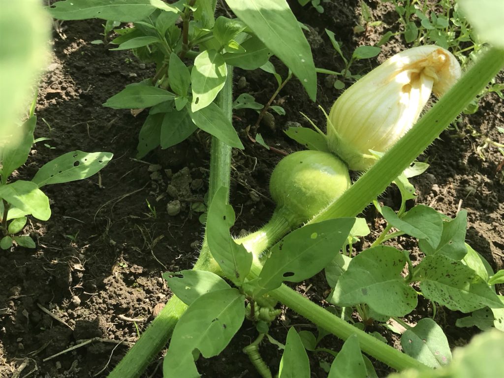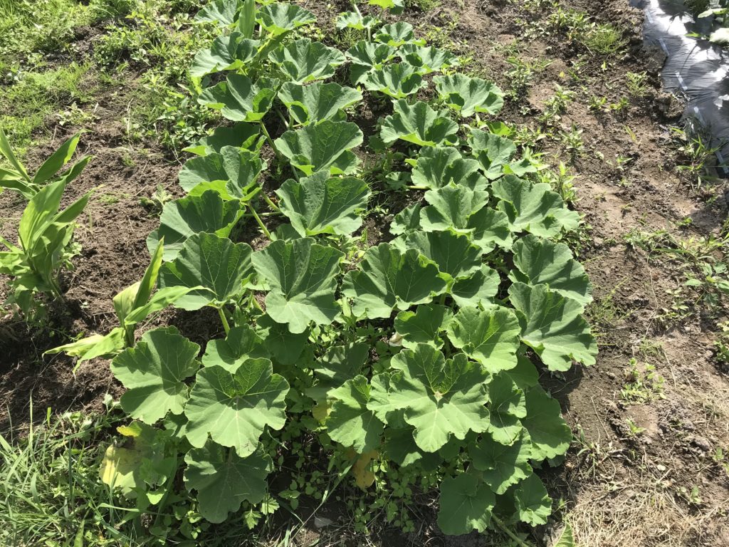 6月6日、祖母畑からポツポツと生えているカボチャを発見。
