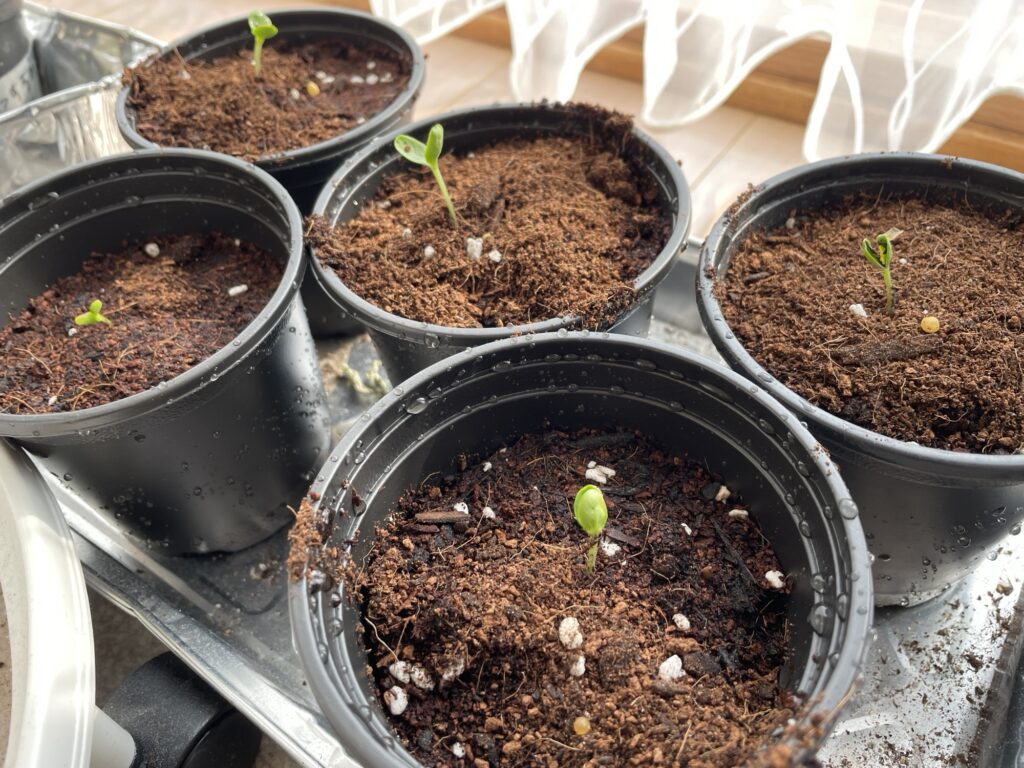 6月1日、1か所からの芽を、2-3本に間引きしました。