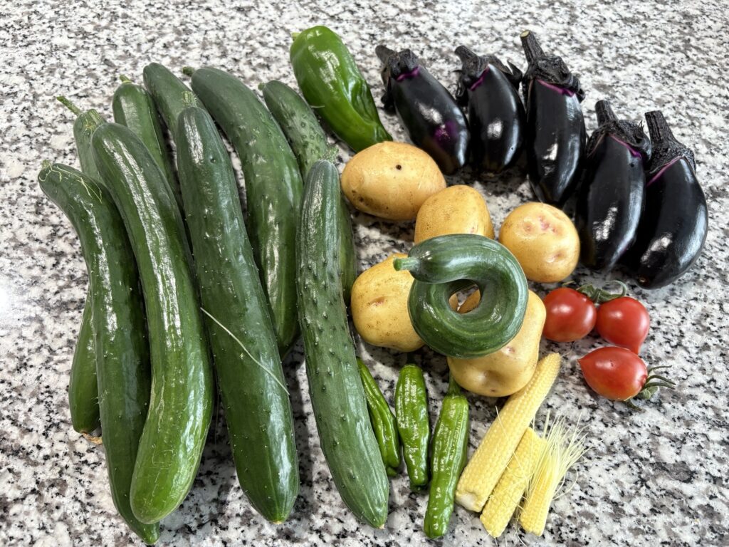 7月21日、小玉スイカ2種「ピノガール・赤てまり」の様子。