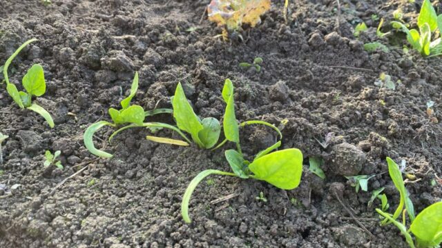 ほうれん草 後悔中。ほうれん草、穴あきマルチに種まきしなければ・・・。